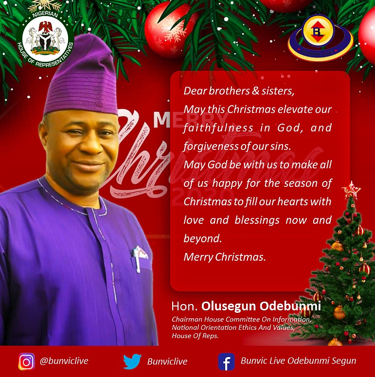 The Chairman House of Representatives Committee on Information, National orientation ethics and values, Hon Olusegun Odebunmi has called on Christians to use the Christmas period to pray for continuous peace and harmony among Nigerians in the country.